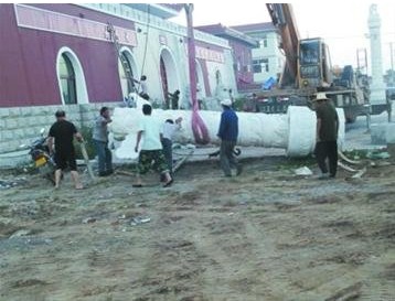 7月28日上午,當(dāng)?shù)卣匍_專題會(huì)議研究決定:責(zé)令“山寨版天安門”經(jīng)營者必須按原設(shè)計(jì)方案施工,立即拆除所謂的“華表”,因其占道影響交通;立即整改外裝飾和外造型,否則按違章建筑處理。截至記者發(fā)稿時(shí),此農(nóng)家樂飯店門前“華表”已被拆除,兩側(cè)的大字也已拆除。
